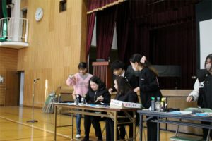 6年生は総合学習の一環で、フィリピン総領事館との交流会を行いました。会の中では、6年生からは津島や西小学校の紹介をした後、けん玉を披露したり書道を披露したりしました。総領事館の方々ともいっしょにけん玉をしたり、書道をしたりしました。その後、総領事館の方からフィリピンの紹介やフィリピンの子どもの生活についてお話をうかがいました。フィリピンが親日であるという話もありました。6年生からは「人気のスポーツは?」「人気のゲームは?」などという質問が出ました。最後に、フィリピン総領事館から、一人一人にブレスレッドのプレゼントをいただきました。日本と似ている点・違う点などを考えながら、楽しく過ごすことができたのではと思います。