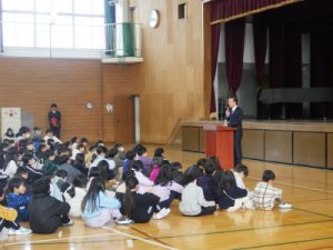 あけましておめでとうございます。今日は冬休み明け朝会を行いました。今年は午年です。なにもかも「ウマ」くいくように取り組んでいきたいと思います。今の学年も残り3か月を切りました。次の学年へのステップです。西小学校では常時学校公開を行っています。寒い中ですが、子どもたちの成長していく姿をご覧いただければと思います。