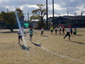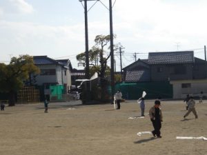 5時間目、1年生は運動場で凧あげをしました。今はなかなか凧あげをする機会もありません。元気よく走り回って、凧を上げていました。