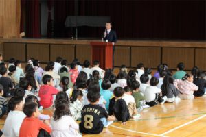 今年度初めての朝会。最初に体育館に来た学年が静かに待つことができました。素晴らしい雰囲気を最初から作ってくれたことで、次に来た学年も続くことができ、全校揃うまで、静かな雰囲気を続けることができました。